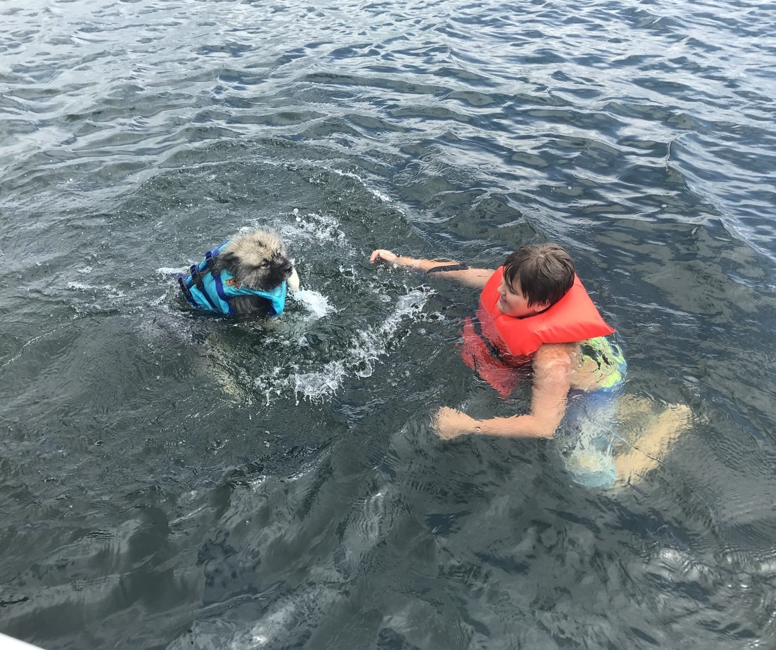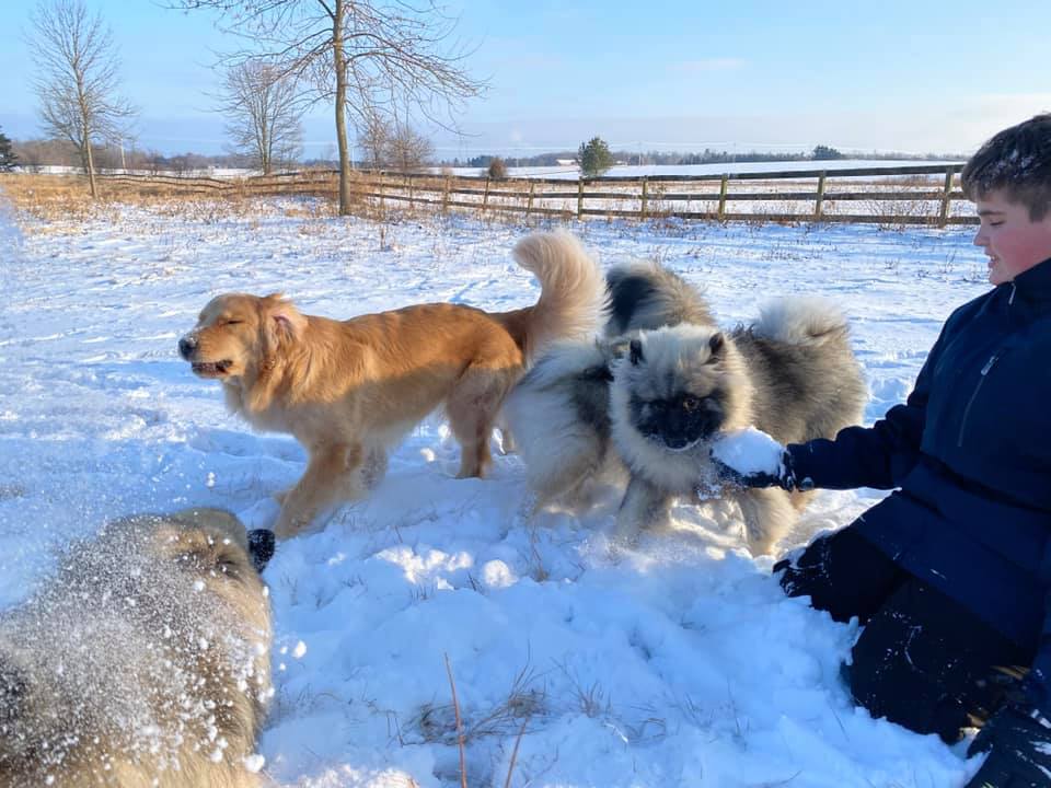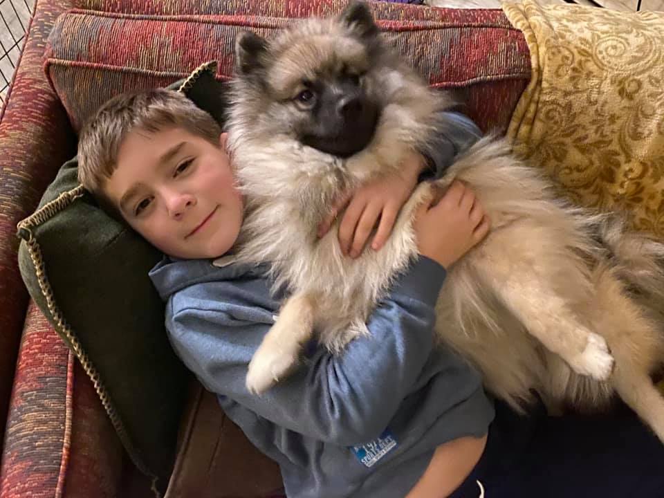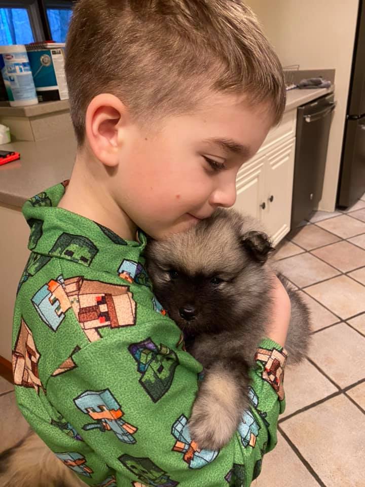 Keeshonden love kids and being with their people, doing whatever their people are doing.